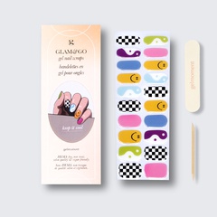 Our GLAM & GO gel nail wraps ensure that no matter how complex your chosen nail design, the application process remains incredibly simple. Our GLAM & GO gel nail wraps require no glue, base coat, or top coat—just peel them off the packaging, apply them to your nail, trim to size, cure twice, and voilà!